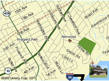 Take Route 13 Chester Pike (North) to "The Arch of Norwood"